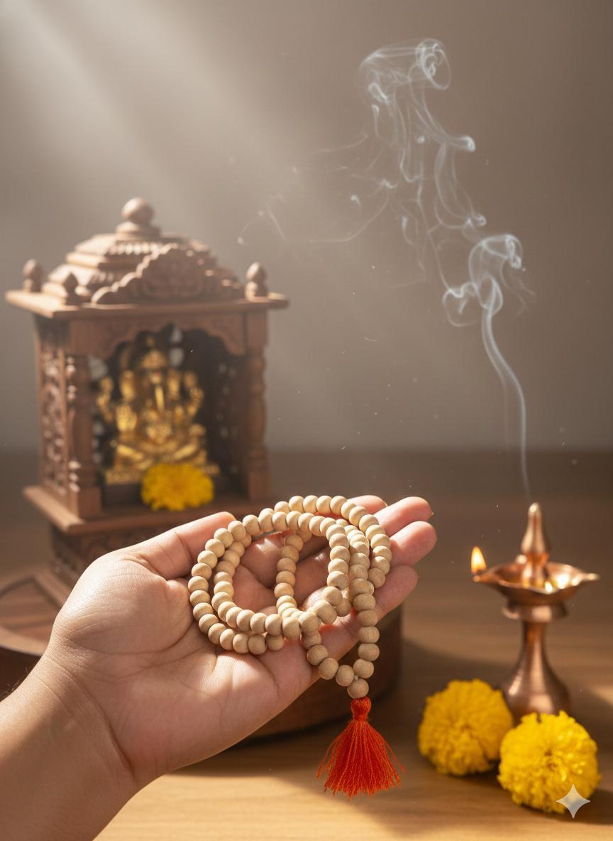 トゥルシマーラは、ホーリーバジル(トゥルシー)から作られた特別なマーラです。このマーラは、心を穏やかにし、スピリチュアルな成長をサポートする力があると信じられています。